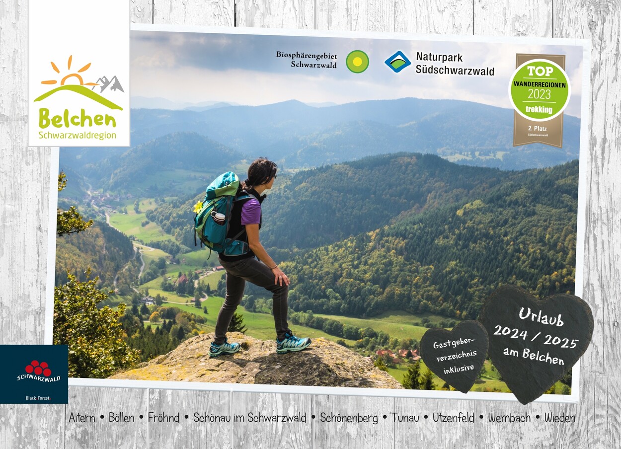 Urlaub 2024/2025 - Natürlich bei uns am Belchen! Das Urlaubsmagazin der Schwarzwaldregion Belchen stellt Ihnen die einzigartige Naturlandschaften sowie die Besonderheiten der Urlaubsregion rund um den schönsten aller Schwarzwaldberge, den 1.414 Meter hohen Belchen vor. Außerdem beinhaltet das Urlaubsmagazin einen Gastgeberteil, in dem Sie alle Unterkünfte in der Schwarzwaldregion Belchen finden. Sei es die einfache Gruppenunterkunft oder das komfortablen 4 Sterne Hotel - hier ist bestimmt für jeden etwas dabei!
