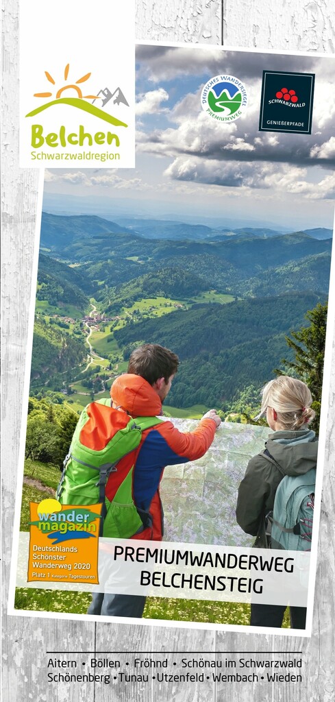 Der Flyer zum zertifizierten Premiumwanderweg und Schwarzwälder Genießerpfad "Belchensteig", ausgezeichnet als Deutschlands schönster Wanderweg 2020.
