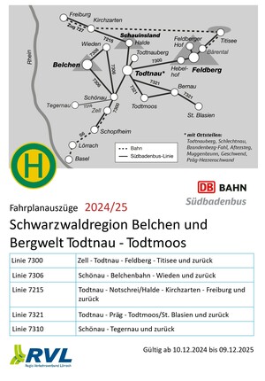 Gebiet: Schallstadt, Ebringen, Merzhausen, Au, Wittnau, Horben, Kirchzarten, Buchenbach, Ehrenkirchen, Pfaffenweiler, Bollschweil, Sölden, Horben, Schauinsland, Todtnau, Belchen, Münstertal, Wieden, Utzenfeld, Aitern, Schönau, Fröhnd, Häg-Ehrsberg, Todtmoos, Kleines Wiesental, Zell im Wiesental, Hausen im Wiesental