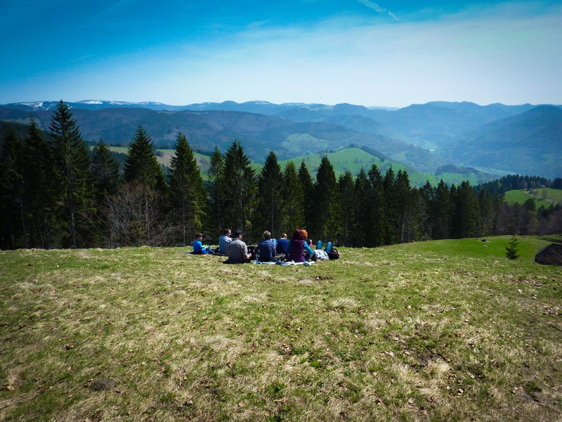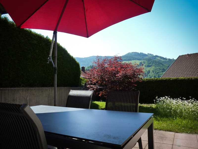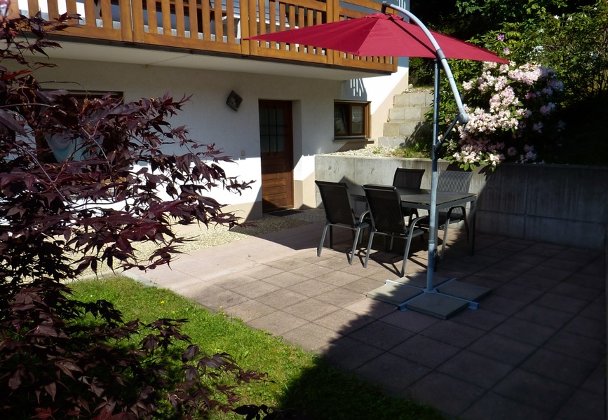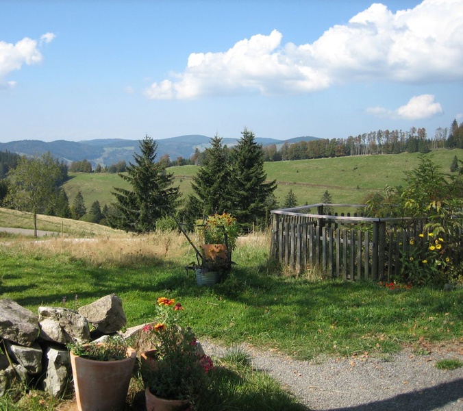 Ansicht Haus - Das Haus liegt in einer ruhigen, dennoch zentralen Wohngegend direkt am Waldrand. Zu Fuß in 5 Min. zu erreichen sind: das Zentrum, beheiztes Freibad, Minigolf, Restaurants, Supermarkt, Kirche und Bushaltestelle Esstisch im Wohnzimmer - Esstisch im Wohnzimmer - Wohnzimmer und Esstisch - Wohnzimmer mit TV Board - Wohnzimmer mit Blick ins Schlafzimmer - Schlafzimmer mit Doppelbett - Küche - Badezimmer - Badezimmer mit Wasch- und Duschbereich - Flur von der Eingangstür - Der Freisitz befindet sich direkt vor der Ferienwohnung und wird ausschließlich von unseren Gästen benutzt - Freisitz mit Blick zur Eingangstür - Freisitz mit Blick in die Landschaft - Belchen - Auf dem Wanderweg vom Belchen nach Schönau Knöpflesbrunnen - Wanderung vom Knöpflesbrunnen nach Schönau Gisibodenalm -