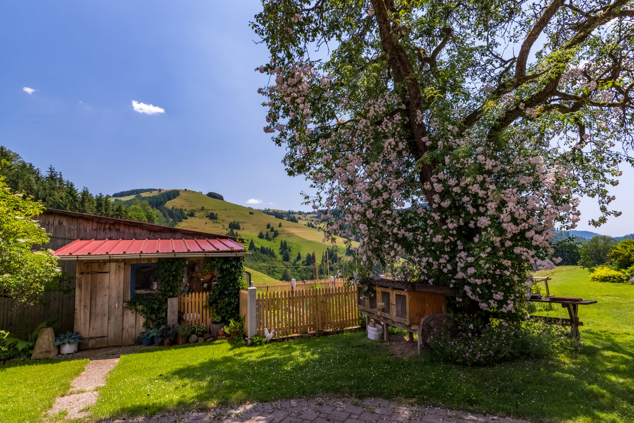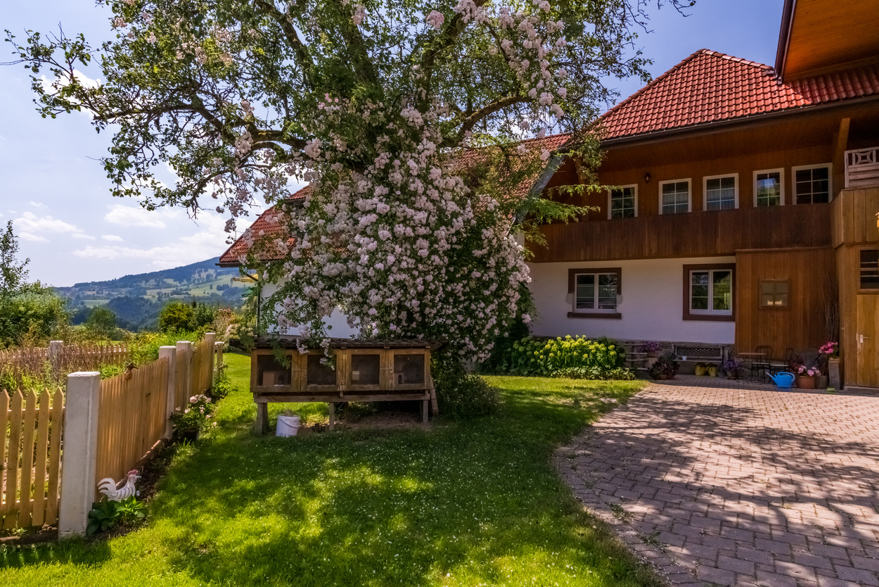 Außenansicht Ferienhof Wuchner  - Ferienhof Wuchner mit Garten  - Unser Bauernhof liegt inmitten eines schönen Wandergebietes in ruhiger und sonniger Lage. Spielplatz, Liegewiese, hofeigene Produkte! Hasenstall unter einem blühendem Baum im Hintergrund das Wohnhaus Wuchner - Gartentisch unter einem blühendem Baum mit Blick auf die umliegenden grünen Wiesen und Wälder - Gartentisch unter einem blühendem Strauch im Hintergrund das Haus  - Blick vom Garten auf die umliegende grüne Landschaft  -  -  -  -  -  - Winter in Künaberg - Ferienwohnung Frühlingserwachen - Ferienwohnung Sommerwiese - Ferienwohnung Herbstlaub - Ferienwohnung Wintertraum - Traumhafte Ausblicke Terrasse Fewo Wintertraum - Blick zum Belchen - Stimmung nach Gewitter - Kleine Kätzle -  - Herbststimmung -