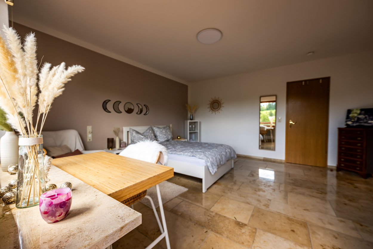 Unsere großzügige und liebevoll eingerichtete Ferienwohnung auf dem Letzberg bietet dafür alle Möglichkeiten… Inmitten von Natur, Wander-, Spazier- und Mountainbikewegen bietet es sich an… …