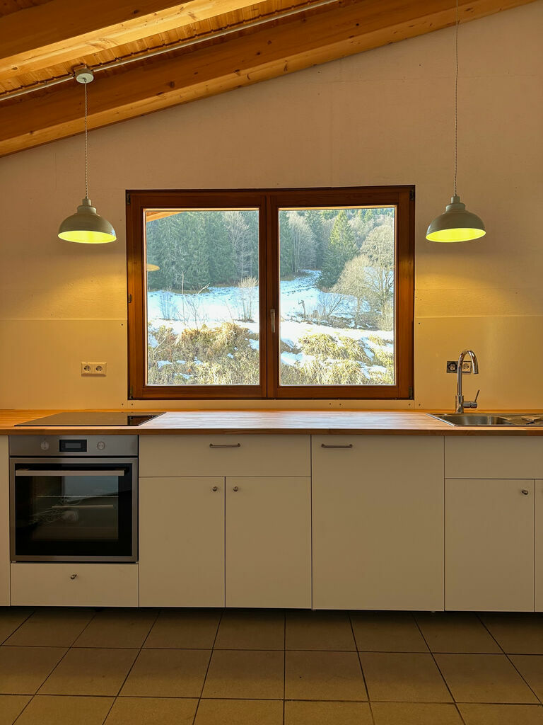Im Erdgeschoss befindet sich der Schulungsraum inklusive Garderobe mit einer Fläche von ca. 60 m². An zwei grossen Tischen (variabel stellbar) finden bis zu 20 Personen statt. Direkt neben dem Schulungsraum liegt die hell und großzügige Küche mit weiteren Sitzgelegenheiten. Die Toiletten befinden sich ebenfalls im Erdgeschoss und sind von aussen einfach zu erreichen. Hinter dem Gebäude haben wir eine Feuerstelle eingerichtet.